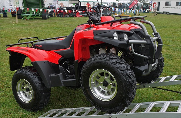 The APACHE UK made RLX 400CC/ & RLX 450CC 4X4 Utility are their top of the line quads. Speeds up to 65 mph, Agile, Smooth riding. EPA/DOT/ CARB/ Euro 2 Approved. Dual headlights, turn signals, winch, alloy wheels standard.